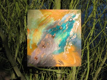 53cm x 56cm Pollyfiller and acrylic on board highlighted with liquid gold leaf and glass beads.